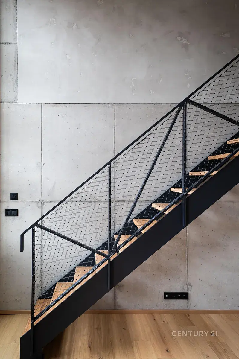 Vzdušné interiéry s vysokými stropy, velkoformátovými okny a přiznanými betonovými prvky vytvářejí osobitou atmosféru, která propojuje historii s moderním životním stylem.