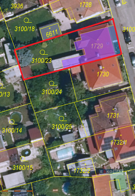 • Výjezd z garáže přímo do ulice, vedle domu je průchod na zahradu