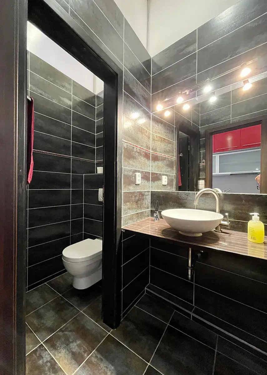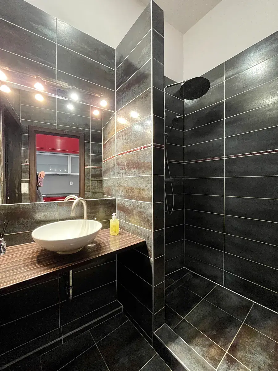 Byt se nachází v klidné ulici, což je velkou výhodou této žádané lokality. Vysoké stropy a velké místnosti dodávají interiéru pocit vzdušnosti a otevřeného prostoru.