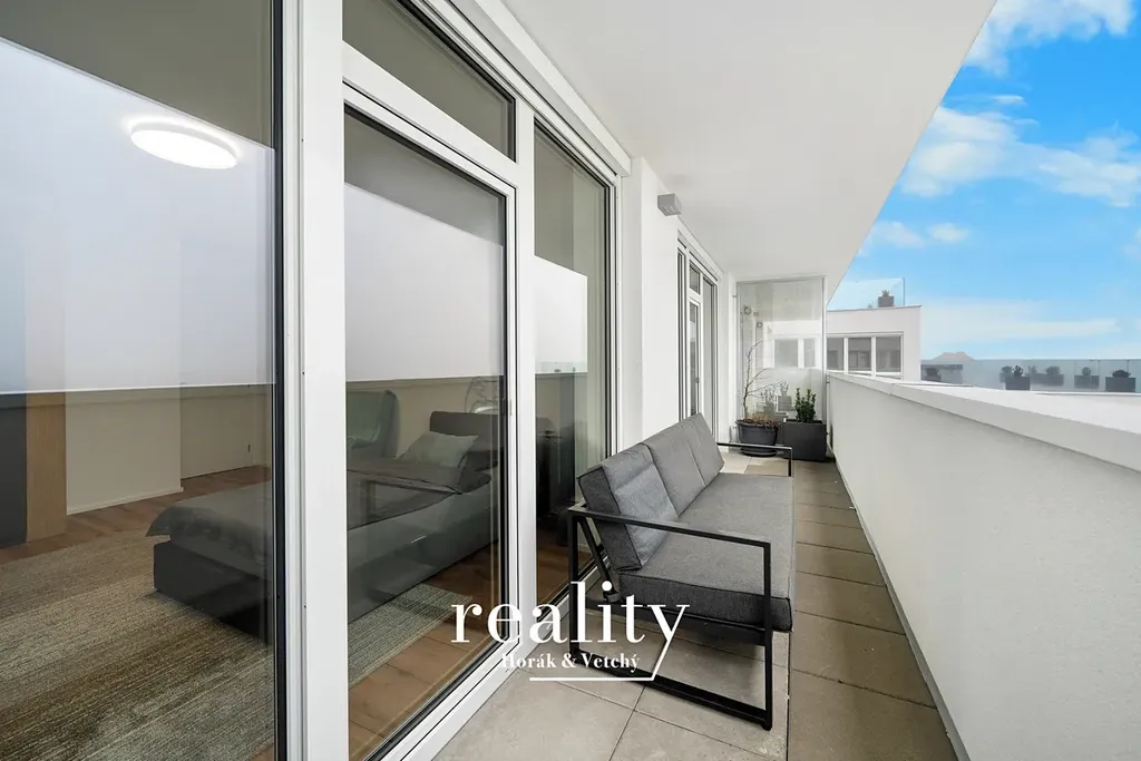 • lodžie 13,6 m² a balkon 10,7 m² – dostatek místa pro relax i posezení