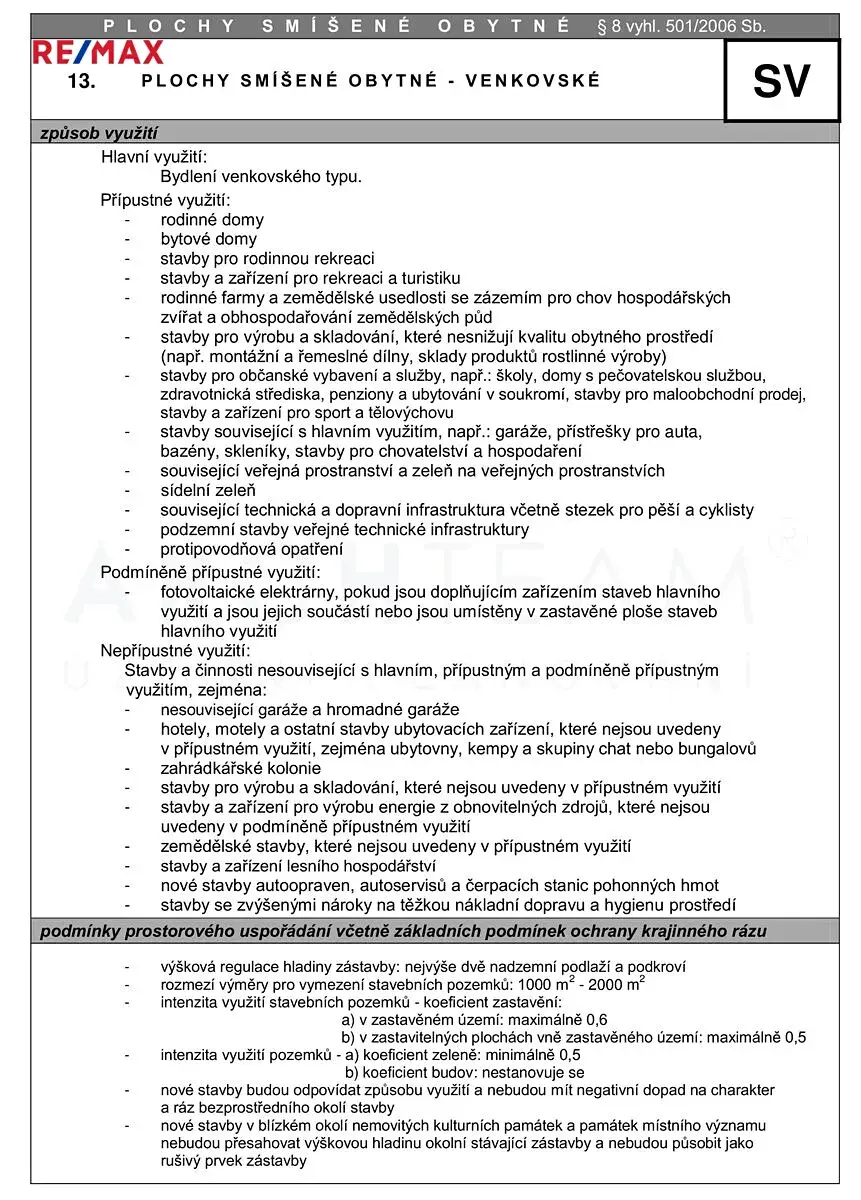 Využití dle územního plánu SV (Z203) – Plochy smíšené obytné – venkovské.