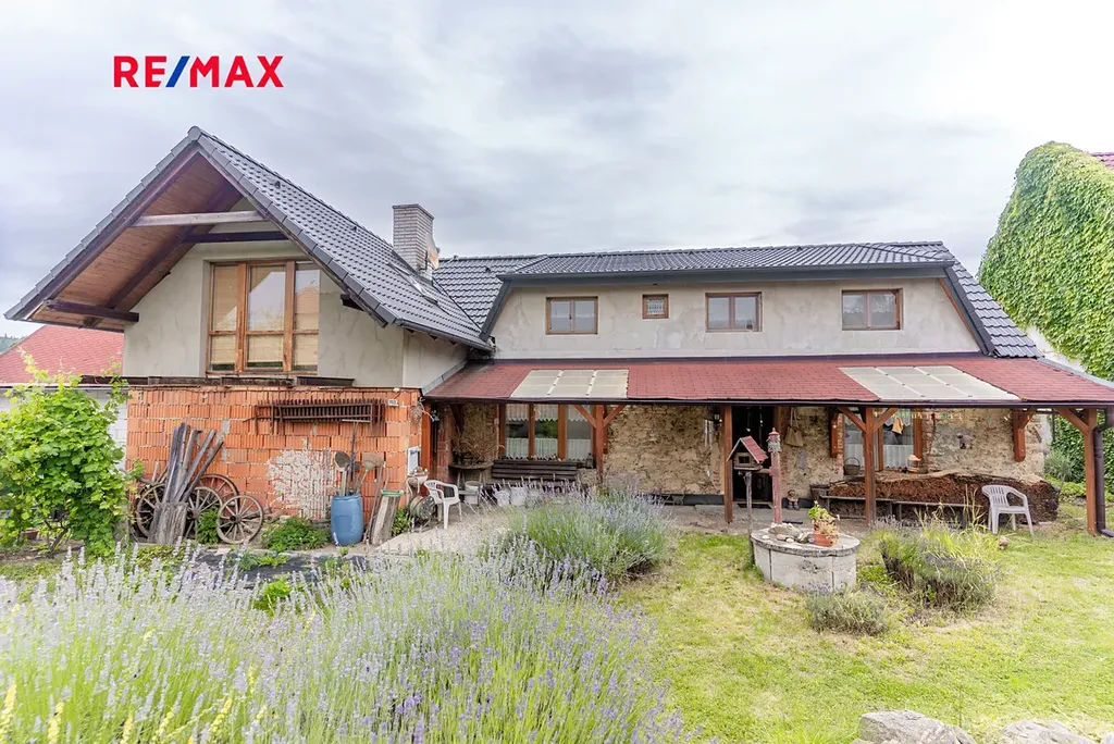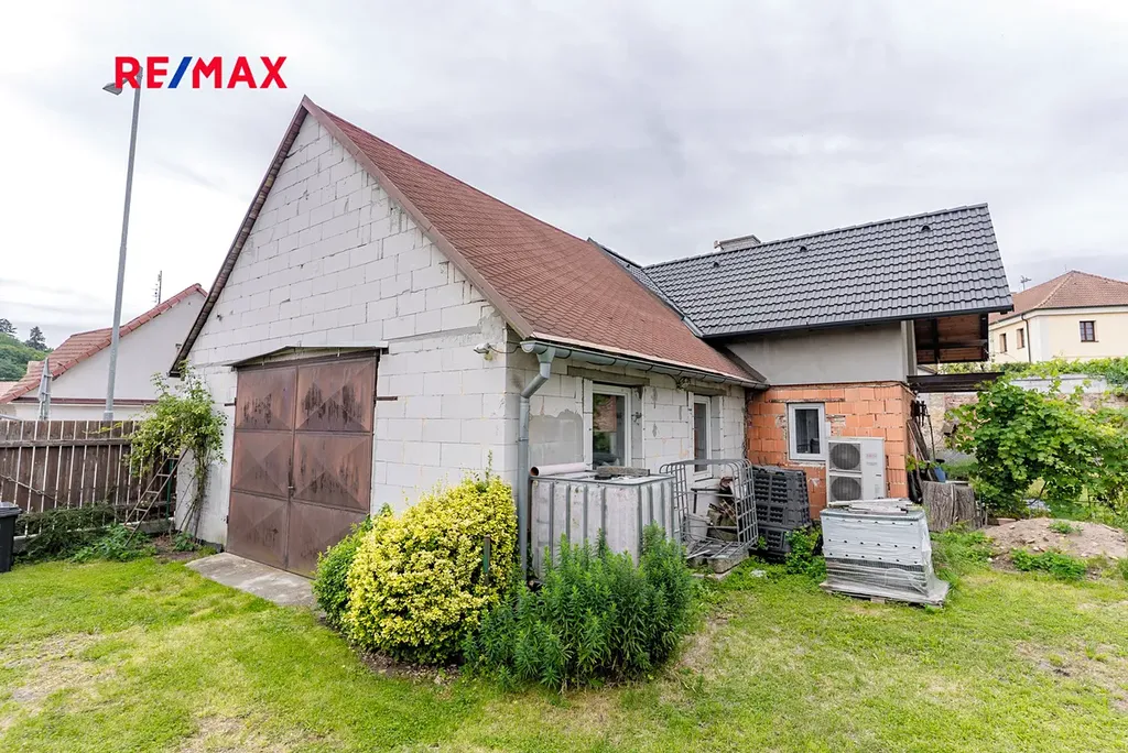 Součástí domu je velká garáž, dílna a technická místnost. Vytápění je zajištěno moderním tepelným čerpadlem Fujitsu, dům je napojen na obecní vodovodní řád a kanalizaci. Nová střecha byla instalována v roce 2021.