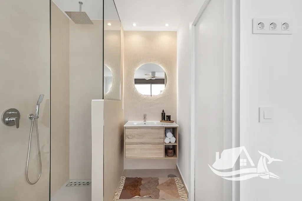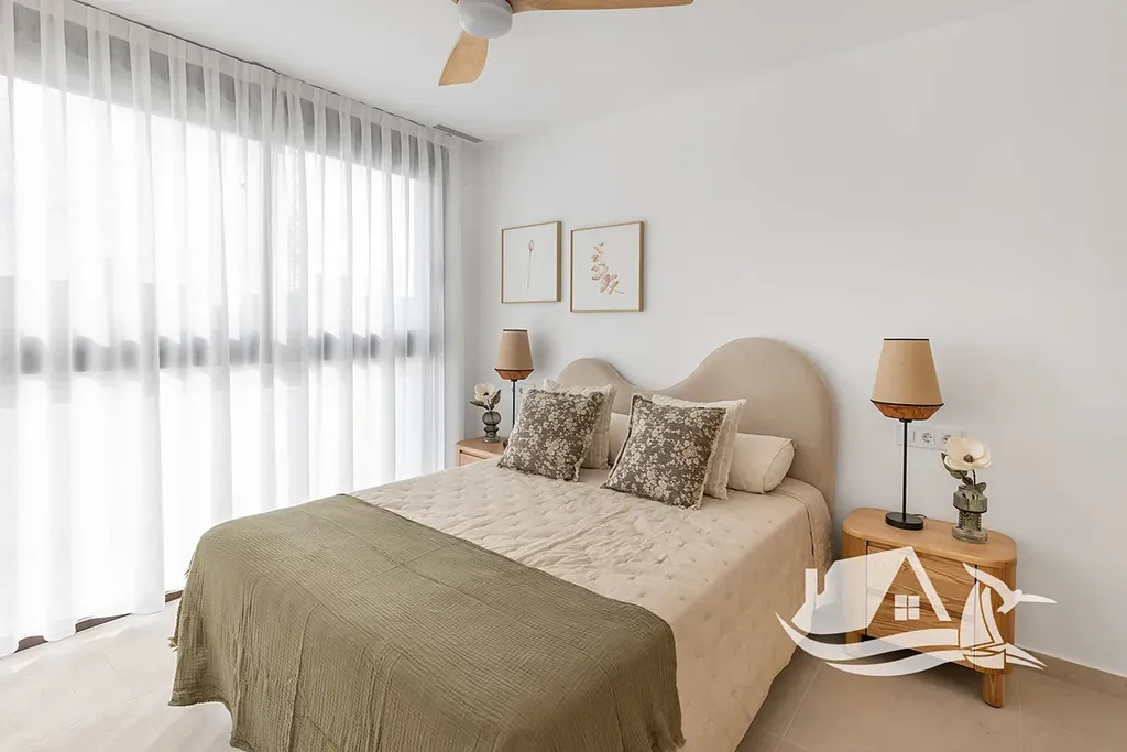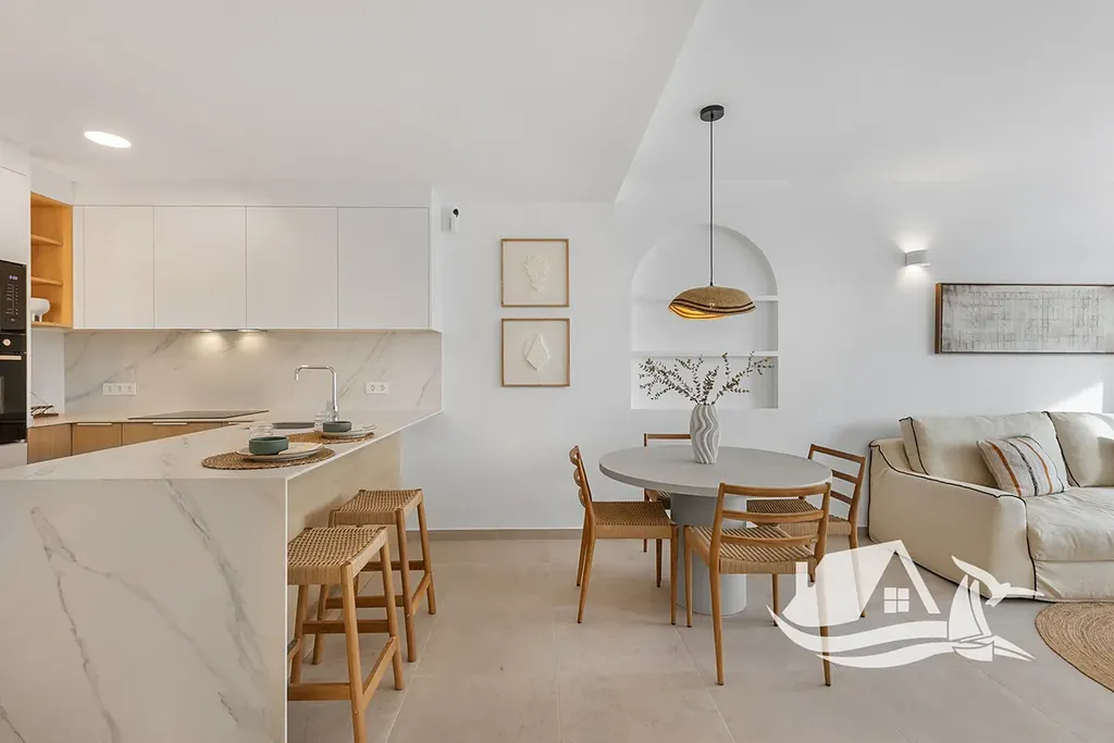 Byty disponují elegantní porcelánovou dlažbou, vybavenou kuchyní, vestavěnými skříněmi a před instalací klimatizace, a pro větší pohodlí je možné dokoupit garáž, která zvyšuje bezpečnost i hodnotu investice. Lokalita je mimořádně atraktivní díky pouhému kilometru k moři a golfovému hřišti, což zaručuje snadný přístup k plážím i sportovnímu vyžití, přičemž mezinárodní spojení zajišťuje letiště vzdálené 44 km.