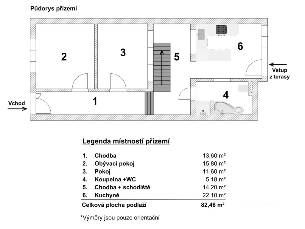 • přízemí: byt 2+1 o celkové ploše 82,48 m²,