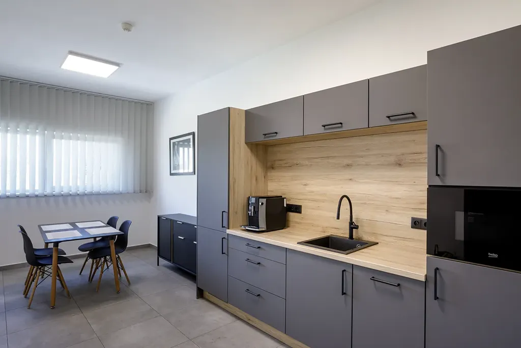 Kanceláře v ISO OFFICE PARK se nacházejí v pěti nadzemních podlaží. V rámci pronájmu můžete využít zasedací místnost, kuchyňku, sociální zařízení a všechny společné prostory.