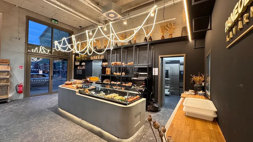V přízemí domu se nachází vyhlášená pekárna a kavárna Paneolit – ideální na snídani, kávu nebo pracovní schůzku bez nutnosti kamkoliv jezdit.