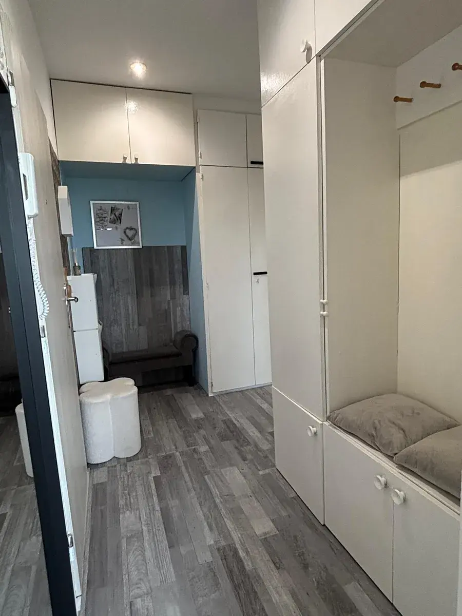 Byt je částečně zařízený; kuchyně je vybavená kuchyňskou linkou, myčkou, sklokeramickou deskou, troubou, pračkou a ledničkou. Obývák je vybavený rohovou sedací soupravou a tv stolkem. V ložnici se nachází velká šatní skříň - bez postele.