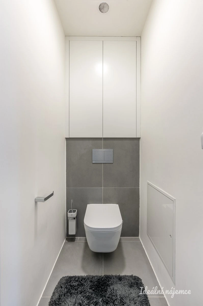 Dětský pokoj nabízí zvýšenou postel s úložnými prostory a dětským stolkem k učení, dále komody a vestavěnou šatní skříň. V prakticky udělané koupelně najdeme sprchový kout, pračku se sušičkou, umyvadlo a komody. Toaleta se nachází samostatně.