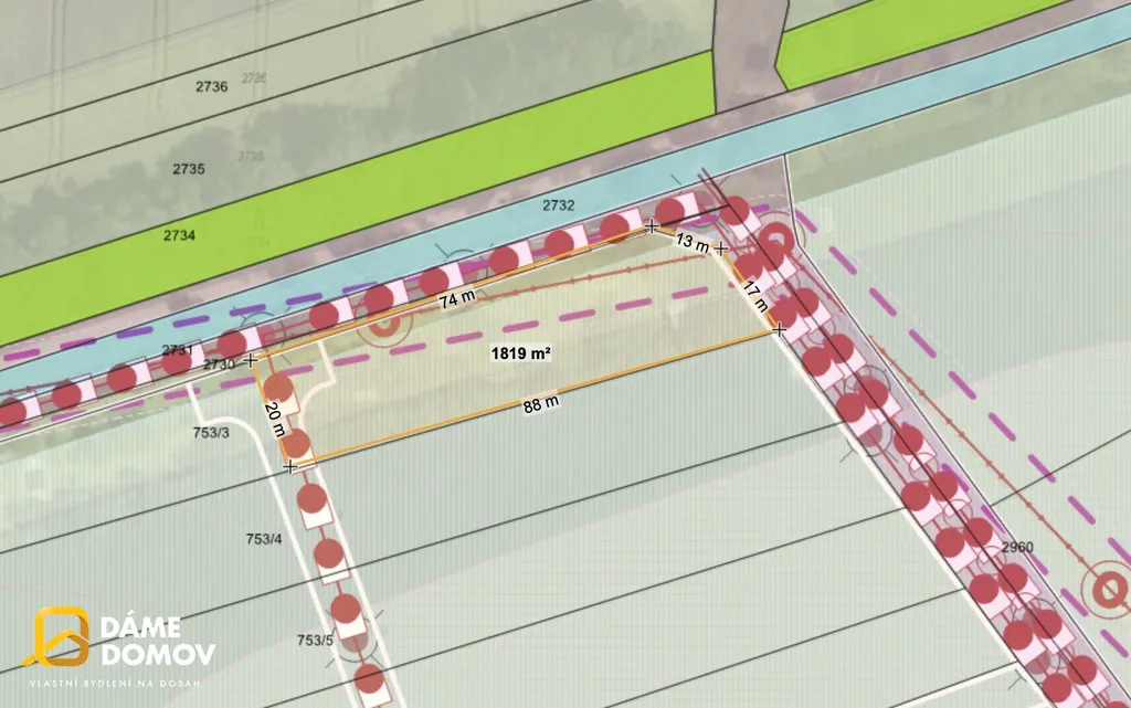 Šířka pozemku: 20 m Délka pozemku: 88 m
