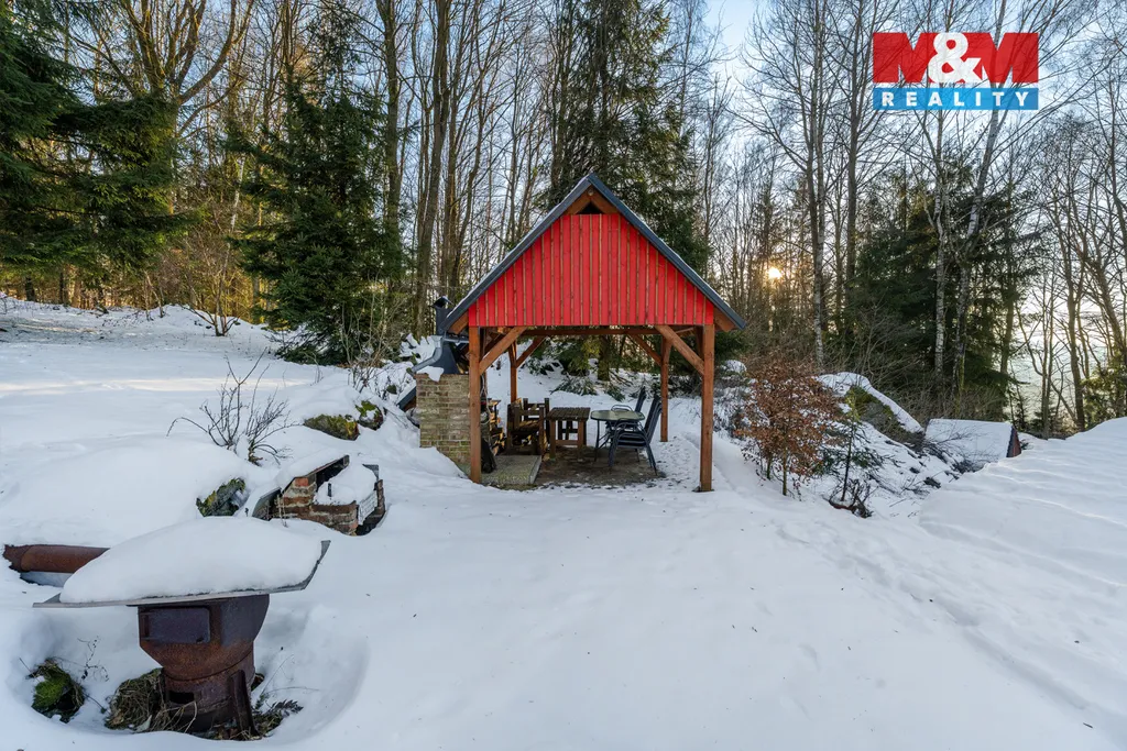 Pozemek o výměře více než 9 369 m² zajišťuje dostatek soukromí i prostoru pro venkovní život. K dispozici je pergola, garáž a místo, kde si užijete každé roční období – od letních večerů venku až po zimní návraty z hor. Dům má vlastní zdroj vody, novou elektroinstalaci a jímku.