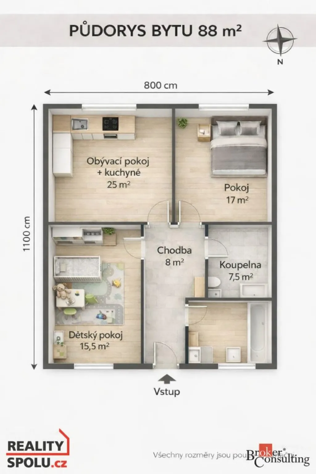 V ceně je kompletně vše, včetně přípojek na kanalizaci, vodovod a elektřinu. Součástí není jen kuchyňská linka, svítidla a interiérové dveře (možno zajistit po domluvě).