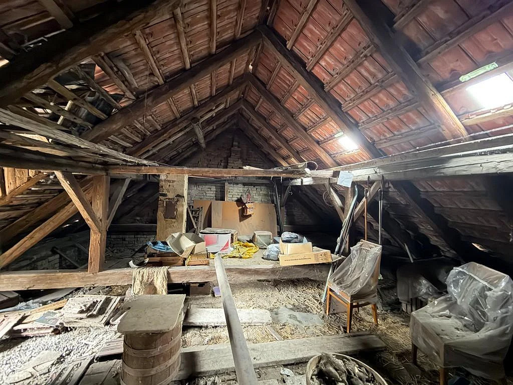 Vstupními dveřmi vejdeme do prostorné chodby o celkové ploše cca 15,1 m², která propojuje hlavní obytné části domu. Po levé straně se nachází pokoj o výměře cca 16,46 m², který může sloužit jako obývací pokoj či ložnice. Z tohoto pokoje je vstup do další místnosti o ploše cca 10,14 m², vhodné jako ložnice, dětský pokoj, šatna nebo pracovna. Z již zmíněné chodby je dále přístup do kuchyně o rozloze cca 9,46 m², kde je zároveň umístěn ohřev teplé vody. Z kuchyně vejdeme do prostorného pokoje o velikosti cca 22,43 m², který lze využít jako hlavní obývací pokoj či další ložnici. Z kuchyně je také přístup do menší místnosti o celkové ploše cca 8,02 m², jež může sloužit jako samostatná jídelna. Z této místnosti je vstup do komory o celkové ploše cca 4,36 m² z níž je dále přístup do sklepa o stejné výměře. Zároveň je z této místnosti umožněn návrat do hlavní chodby, což zajišťuje přehledné a praktické dispoziční řešení. Chodba pokračuje ke koupelně o celkové ploše cca 3,81 m² a samostatnému WC o celkové ploše cca 1,07 m². Z chodby je vstup na soukromý dvůr, odkud se vchází do jednotlivých nebytových prostor. Z dvoru je přístup na půdu nad domem o výměře cca 68,52m², která přímo vybízí k půdní nástavbě. Nachází se zde komora o rozloze cca 7,55 m², ze které vedou schody do sklepa o celkové ploše cca 5,76 m². Na dvoře jsou dále tři menší nebytové prostory o celkových plochách cca 5,13 m², 4,78 m² a 2,59 m². Ze dvora je po úpravách možné, jak je výše již uvedeno vytvořit místo pro relaxaci a odpočinek.