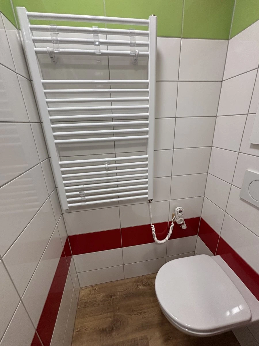Byt je plně vybaven – součástí je kuchyňská linka včetně spotřebičů, úložné prostory, jídelní stůl a rozkládací gauč sloužící jako pohodlné spaní. Stačí se jen nastěhovat.
