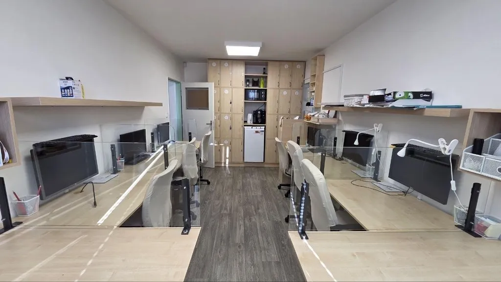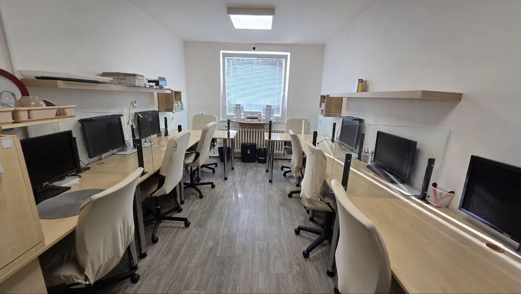 Druhá - pracovní zázemí ze stoly pro zájemce o pronájem, 6 až 8 míst je k máni.