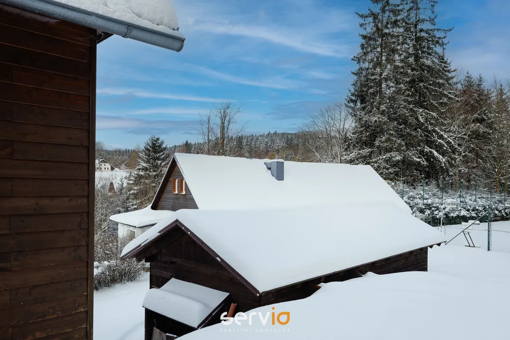 V penzionu najdete plně vybavenou kuchyni, jídelnu s krbovými kamny, dětským koutkem a TV. Pro klidné posezení je zde také klubovna. Vaši hosté jistě ocení lyžárnu-kolárnu, kde můžou uložit své vybavení. Možnost parkování až pro 15 aut na pozemku. Penzion je napojen na veškerou infrastrukturu, včetně vody z vlastního vrtu, kanalizace a elektřiny.