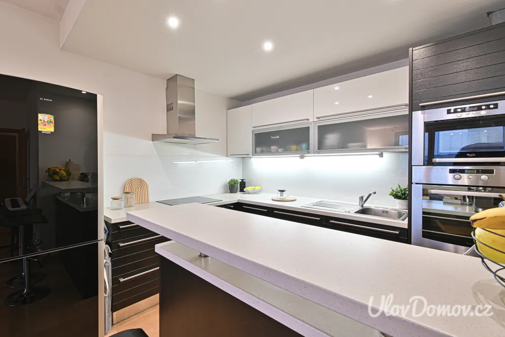 Ve výhradním zastoupení majitele nabízíme ke koupi byt 2+kk v osobním vlastnictví, který disponuje podlahovou plochou 61 m². Přísluší k němu prostorný balkón o výměře 13 m2, garážové parkovací stání a sklepní kóje o výměře 1,35 m2. Velkou výhodou nemovitosti je komora/šatna přímo v bytě, která nabízí nadstandardní úložný prostor o výměře 3 m2. Byt se nachází v 5. nadzemním podlaží bytového domu, který je součástí projektu Milíčovský háj z roku 2009 (developer Skanska).