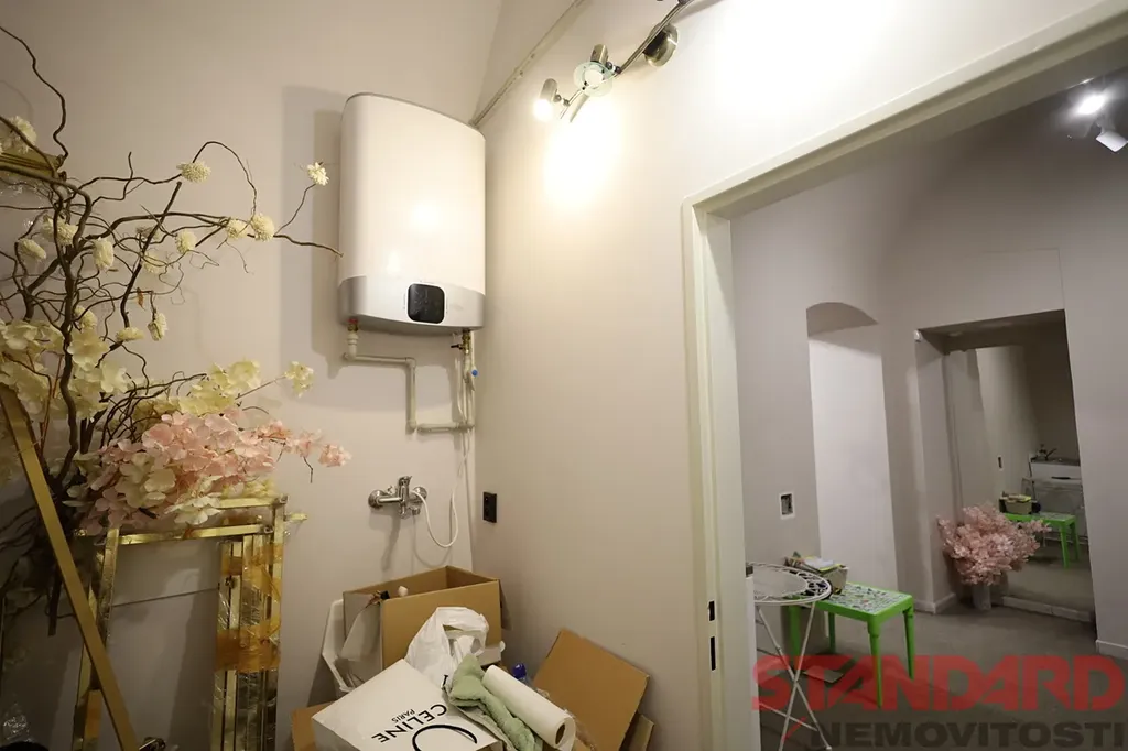 • Centrální místnost 34,22 m2 se vstupem přímo z ulice, půdorys cca 5,9 × 5,8 m