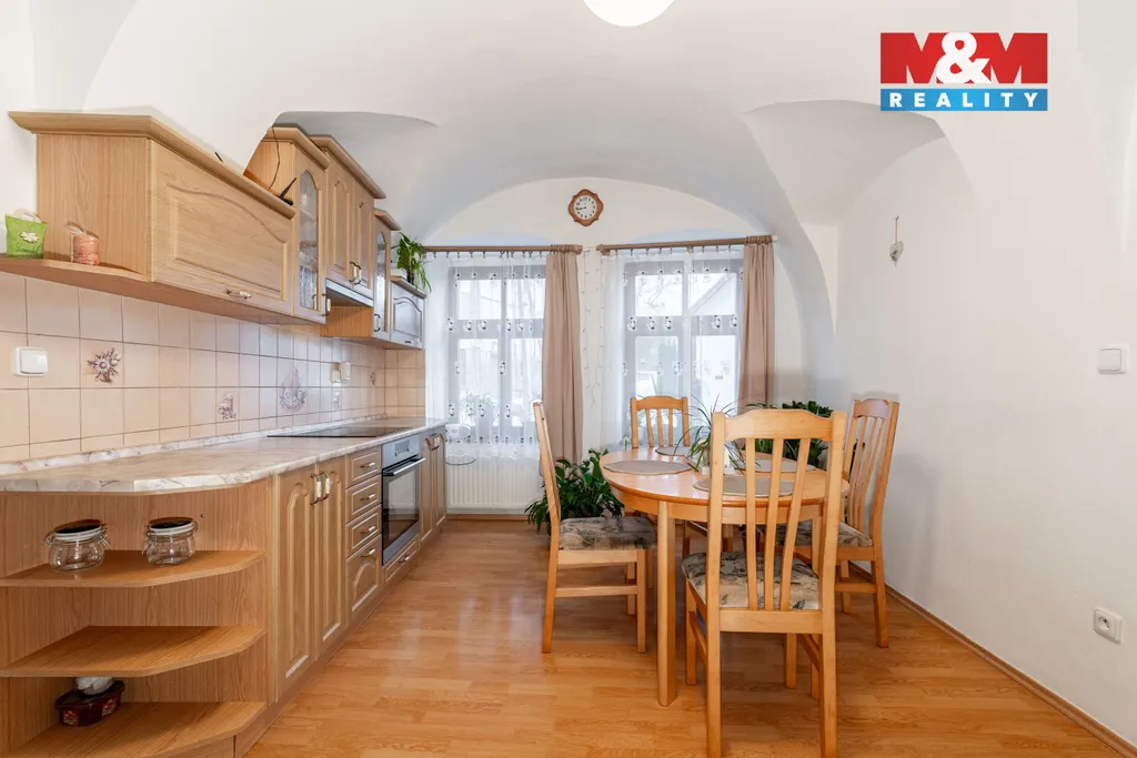 Dům prošel velmi zdařilou rekonstrukcí s dispozici 3+1, dominantou jsou klenuté stropy, které jsou v celé části domu. Půdní prostory, kde vstup je přímo z obývané časti domu, zajišťuje možnost využití dalšího vybudování pokojů dle vašich představ.