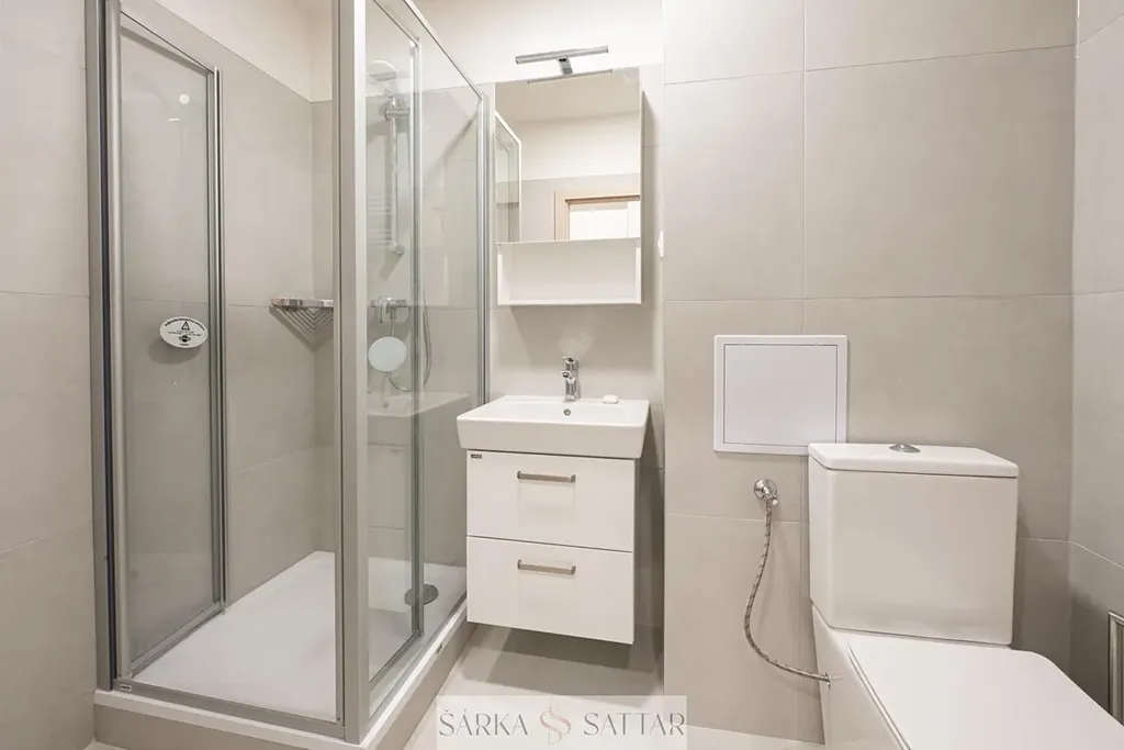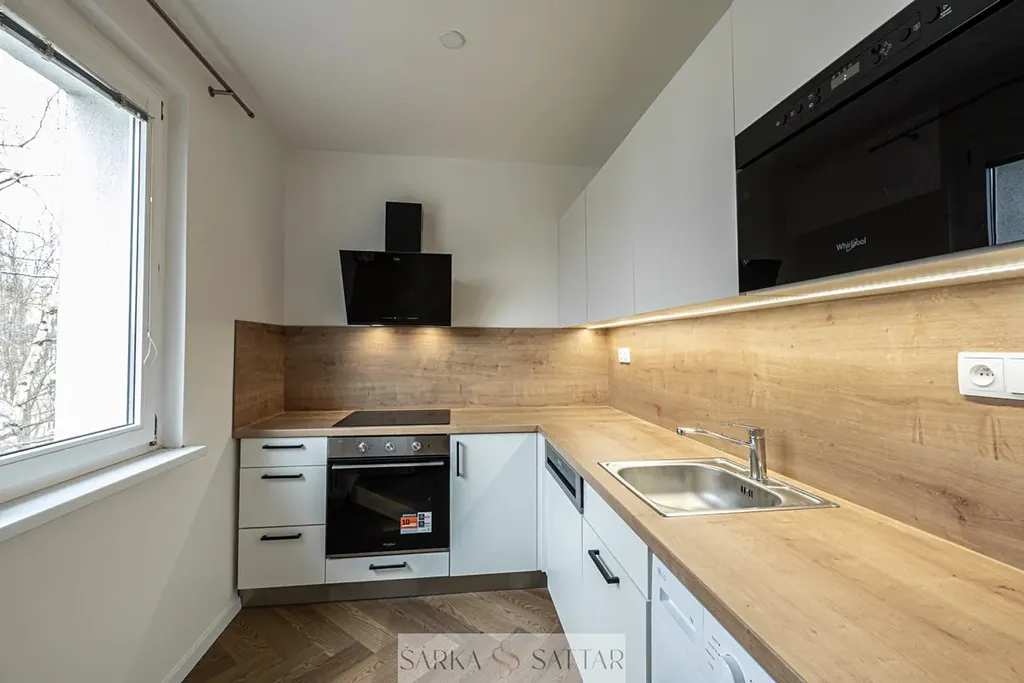 Tento krásný světlý byt prošel kompletní rekonstrukcí a má moderní plně vybavenou kuchyňskou linku s lednicí, mrazákem, el. troubou, indukční deskou, digestoří, mikrovlnnou troubou, myčkou a pračkou. V koupelně je sprchový kout, otopný žebřík, umyvadlo se zrcadlovou galerkou a toaleta. Ložnice i obývací pokoj mají parketovou podlahu. Na chodbě je vestavná skříň.