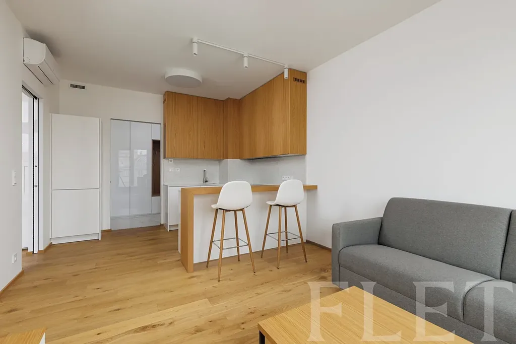 Bydlení zde není jen o prostoru, ale o zážitku. Byt je navržen s důrazem na detail a kvalitní materiály – dřevěné podlahy, francouzská okna s trojskly, klimatizace, rekuperace vzduchu, vestavěný nábytek na míru, elegantní koupelna s pračkou se sušičkou a toaletou s bidetovou sprchou. Vzdušný obývací prostor s plně vybaveným kuchyňským koutem zve k odpočinku i vaření, ložnice poskytuje klid a soukromí. Nechybí lodžie s výhledem do tichého vnitrobloku – ideální místo pro ranní kávu nebo večerní sklenku vína.