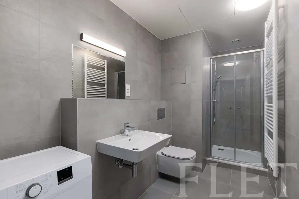 V pokoji je vám k dispozici vybavený kuchyňský kout (indukční deska, el. trouba, digestoř, lednice s mrazákem a vestavěná mikrovlnná trouba). Svou ranní kávu či večerní sklenku vína si budete moci vychutnat na terase s výhledem do nové okolní zástavby. V bytě jsou použity světlé odstíny barev, proto se meze vaší představivosti při jeho zařizování klást nebudou. Zároveň vás jistě potěší přítomnost rekuperace vzduchu. V koupelně se sprchovým koutem a toaletou je k dispozici také pračka. V předsíni je také velká vestavěná skříň, k bytu náleží sklep.