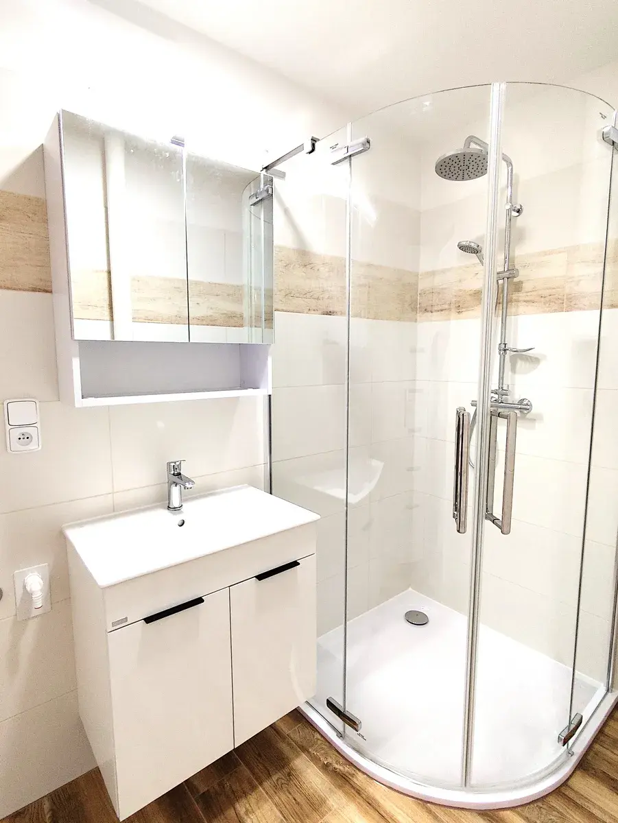 Součástí rekonstrukce je nová zděná koupelna a samostatné WC. V celém bytě jsou nové podlahové krytiny a žaluzie v oknech. Kuchyňská část je vybavena novými spotřebiči včetně indukční sklokeramické varné desky, které zajišťují komfortní a úsporný provoz domácnosti.