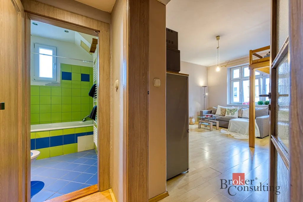 Dispozice bytu je 1+kk, v obytné části se nachází kuchyňský kout, prostorné patro na spaní a malá šatna. Koupelna je zařízena vanou, WC. K bytu náleží sklep. Ve volném čase je možné využít společnou zahradu ve dvoře.