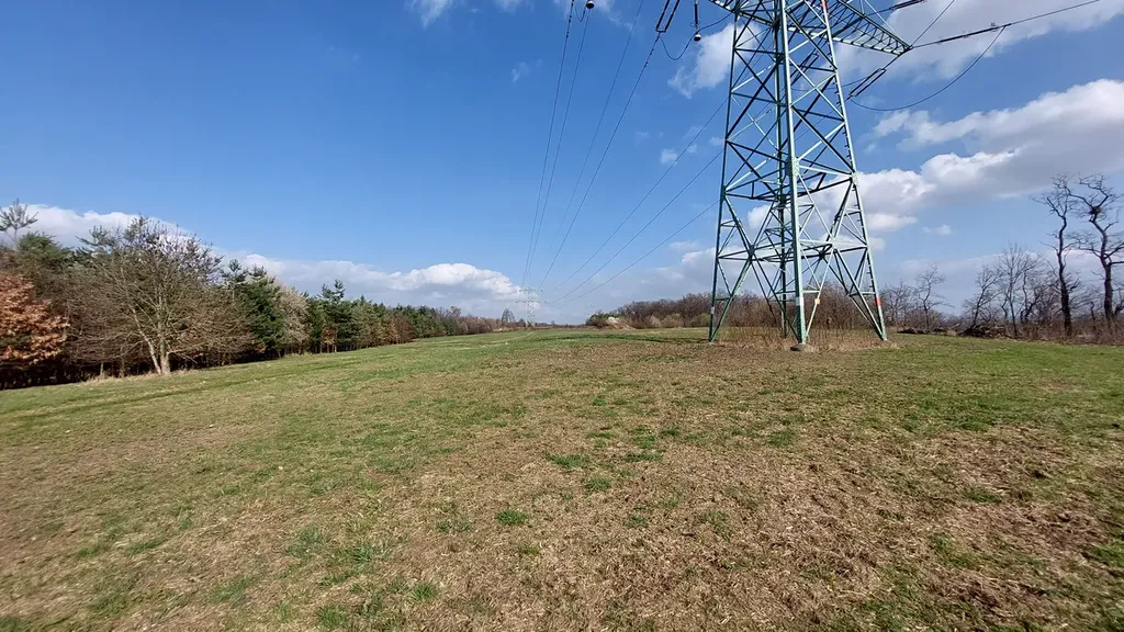 Pozemek není stavební, nejsou na pozemku přípojky IS. Přes pozemek vede vedení vysokého napětí.