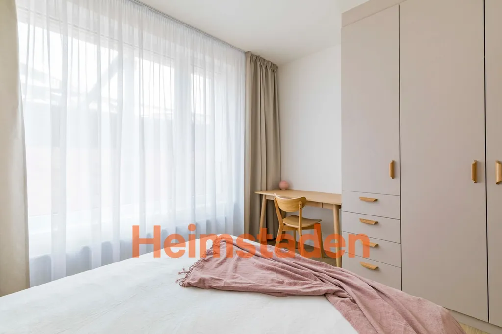 Byt o dispozici 2+kk se skládá z prostorného obývacího pokoje s kuchyňským koutem, samostatné ložnice, předsíně, komory a koupelny s WC. Velkým benefitem je balkon orientovaný do klidného vnitrobloku, ideální pro ranní kávu nebo večerní relax. Interiér je vkusně a prakticky zařízen, nechybí moderní kuchyňská linka s vestavěnými spotřebiči včetně myčky, trouby, indukční varné desky, lednice s mrazákem, dále rozkládací pohovka, jídelní stůl, postel, vestavěné skříně ani pračka. Byt nabízí dostatek úložného prostoru a je připraven k okamžitému nastěhování. Součástí nájmu je také jedno garážové parkovací stání. Elektřina a internet budou převedeny na nájemce.