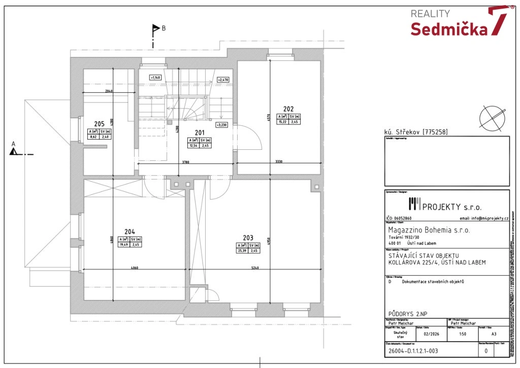 Podkroví má plochu 44,2 m² a je rozděleno na dva samostatné pokoje. Prostory lze využít jako další ložnice, ateliér, pracovnu nebo zázemí pro hosty.