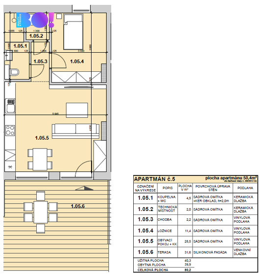 Kompletně nový a plně vybavený apartmán 2+kk 50,4 m² a terasa 31,6 m².