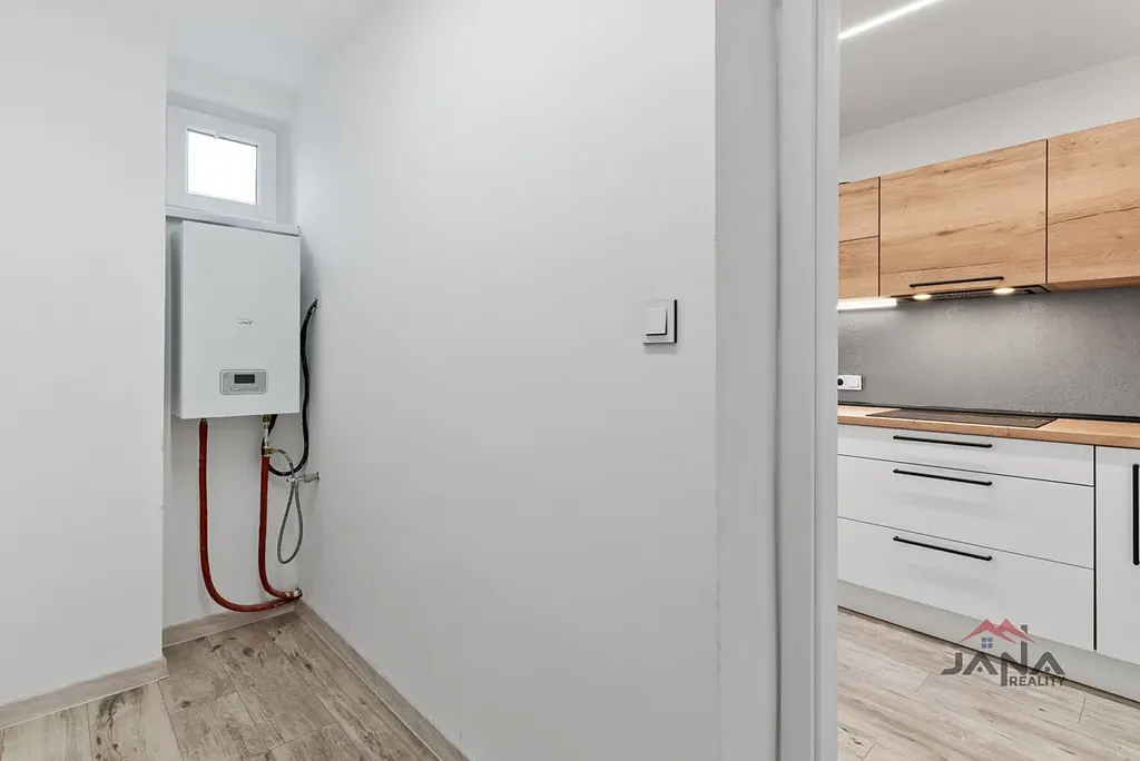 V rámci modernizace byly provedeny nové elektroinstalační rozvody včetně rozvodové skříně, nové rozvody vody, odpadů a topení s novými radiátory a termostatickými hlavicemi. Vytápění je řešeno vlastním elektrickým kotlem Protherm o výkonu 12 kW s termostatem ABB v obývacím pokoji, ohřev vody zajišťuje bojler Ariston Velis o objemu 100 litrů.