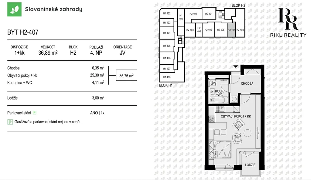 Dovolte mi nabídnout Vám, nový byt k pronájmu o dispozici 1+kk s lodžií, který se nachází v moderním rezidenčním projektu Slavonínské zahrady na ulici Loudova v Olomouci. Jedná se o klidnou čtvrť bytových novostaveb na okraji města s výbornou dostupností do centra. Lokalita nabízí kompletní občanskou vybavenost včetně škol, školek, pošty, obchodů i tramvajové zastávky, která zajišťuje pohodlné spojení do centra města. Velkou výhodou je také blízkost přírody a rychlé napojení na dálniční obchvat.