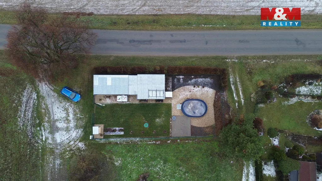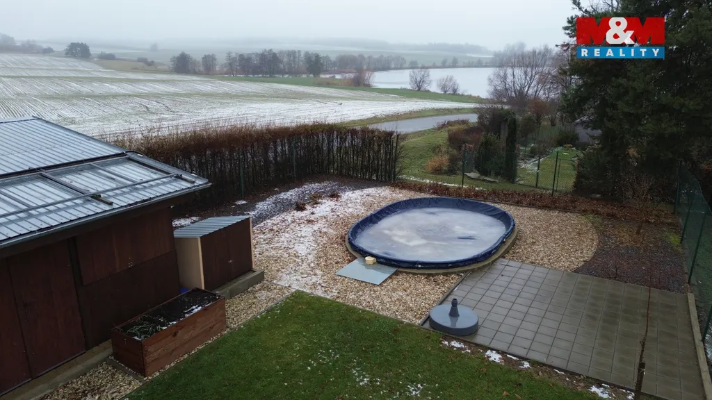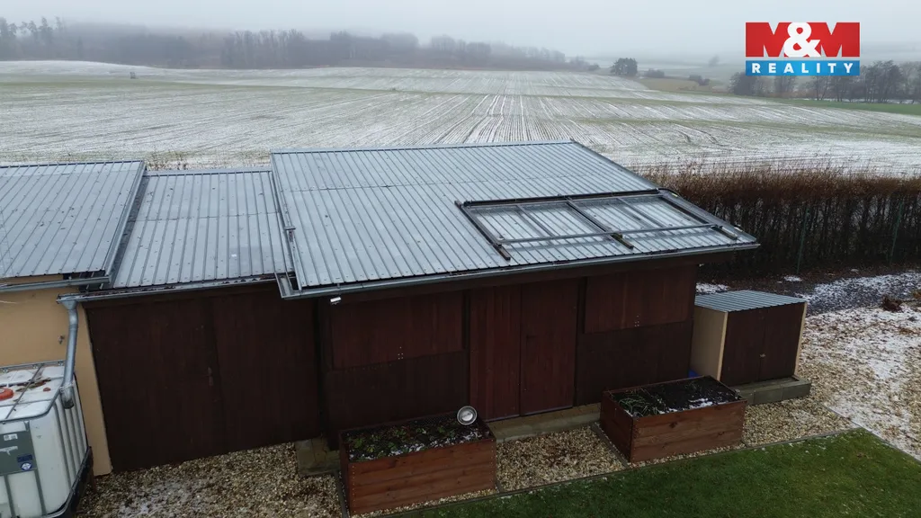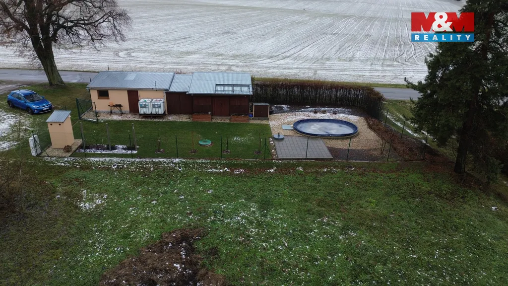 Pergolu s kuchyňským koutkem a s posezením 20 m². Garáž 8,16 m² a zahradní domek 20,06 m² s možností předělat na ložnici. Vrt na vodu hluboký 24 m. Zpevněnou příjezdovou cestu.
