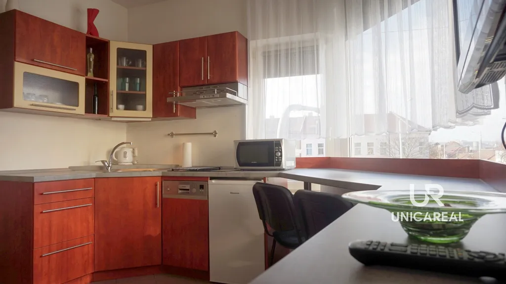 Byt situovaný ve 2n. p. má celkovou užitnou plochu 33m² a je kompletně zařízen nábytkem a elektrospotřebiči viz. fotografie. V bytě se nachází praktická a prostorná šatna, která může sloužit i jako technická místnost. Na oknech jsou instalovány pro lepší komfort zatemňovací rolety. Útulný byt je ideální pro 1 max. 2 osoby. Topení lze regulovat termostatem. Internet je již zahrnutý v ceně nájmu.