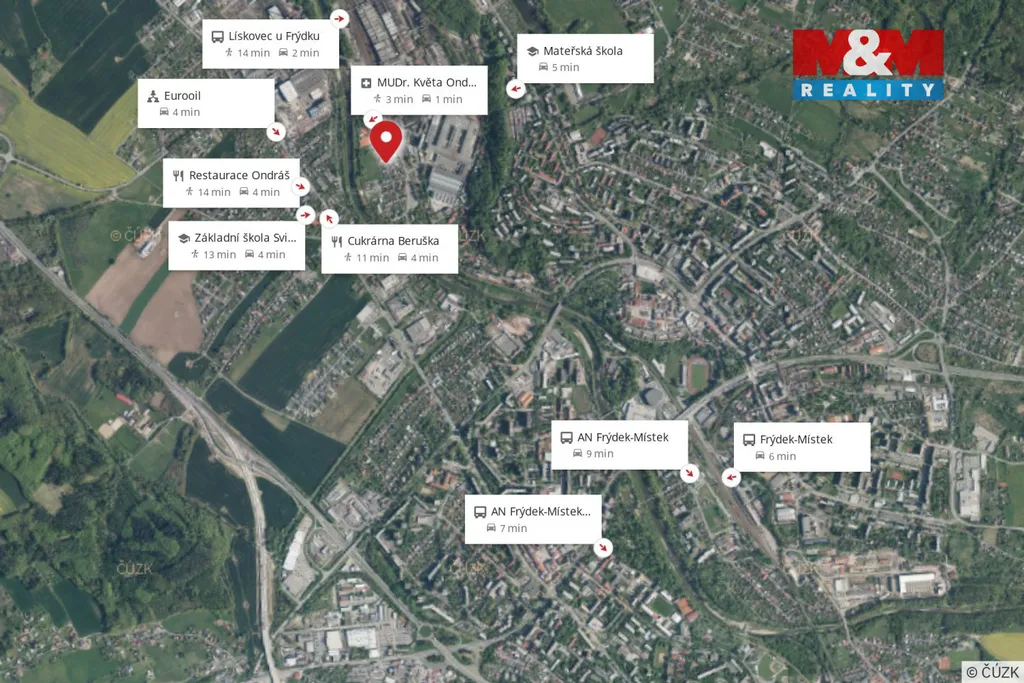 Nachází se v klidné lokalitě obklopené rodinnými domy, kde máte pocit pohody, ale zároveň jste na dosah všem důležitým službám.