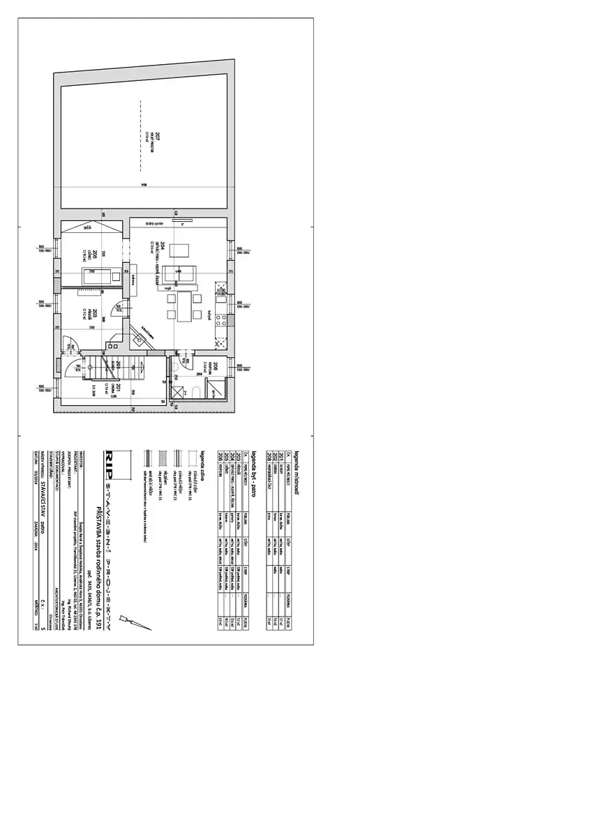 Jedná se o bytovou jednotku v 1. patře a o obytné ploše 58,1m2. Po vstupu ze společné chodby se vchází do světlé a prostorné předsíně ( 9,2m2 ). V předsíni je velké okno a šatní skříň. Z předsíně se vstupuje do velké obytné místnosti ( 32,6m2 ) kde je kuchyň s jídelnou a obývací pokoj. V rohu je příprava na krbová kamna, lze tedy po dohodě topit dřevem. V kuchyni je kuchyňská linka, jídelní stůl se židlemi, lednice s mrazákem. Vedle kuchyně je vstup do koupelny, kde je sprchový kout, umyvadlo, WC, topný žebřík a místo na pračku i sušičku. Součástí vybavení je i koupelnový nábytek. I zde je okno a díky tomu je koupelna světlá. Na druhé straně obytné místnosti je vstup do menší ložnice. Obývací prostor s kuchyní má 2 okna.