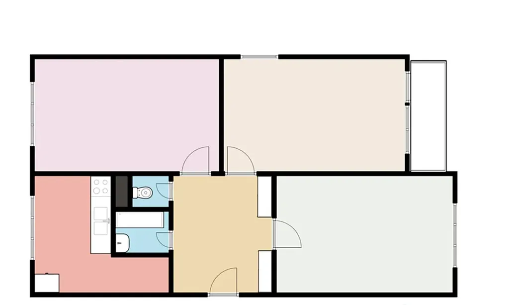 Má zděné příčky, je nutná modernizace bytu – kuchyň, koupelna, dveře, elektroinstalace. Parkety