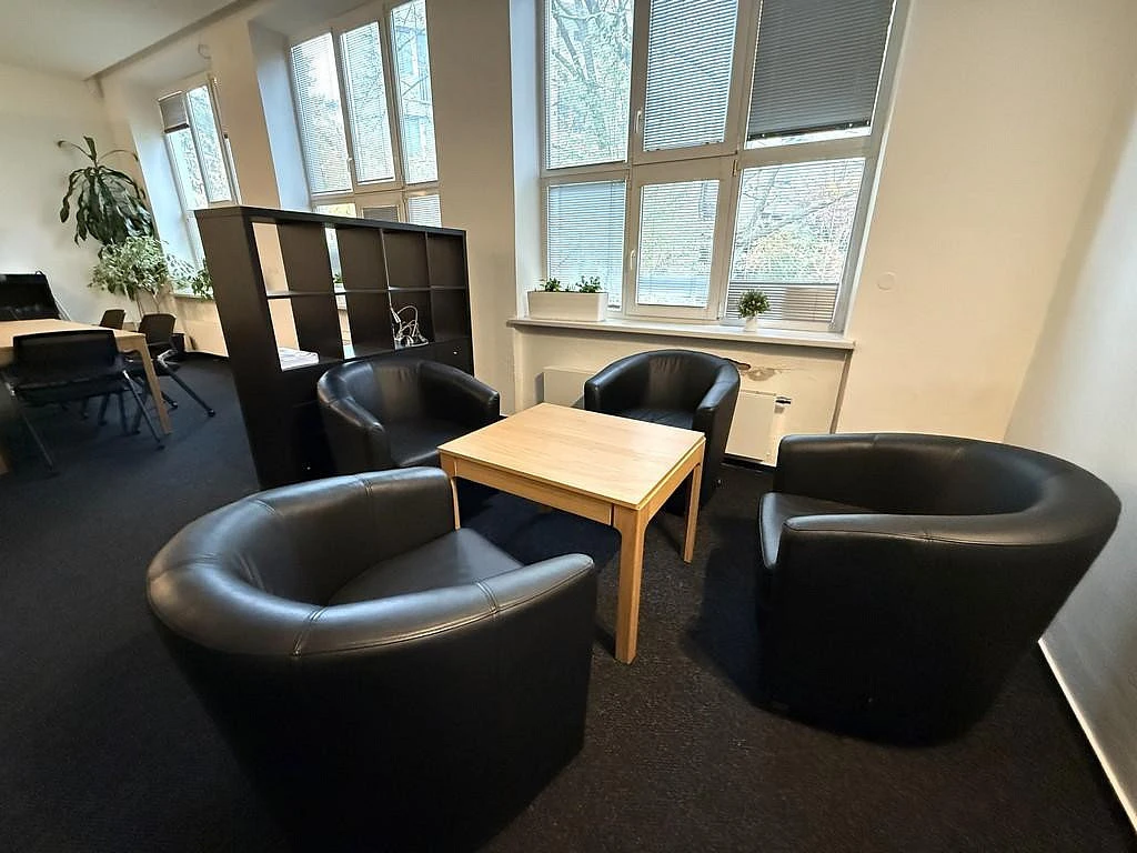 Nabízený prostor tvoří samostatná menší kancelář o velikosti cca 12 m², vhodná pro jedno až dvě pracovní místa. Místnost se nabízí bez vybavení. Kancelář disponuje oknem orientovaným do klidné části objektu. Na chodbě jsou společné prostory jako je WC nebo zasedací místnost, kterou si lze pronajmout za poplatek. Zasedací místnost je vybavena velkým stolem se židlemi, křesly, televizemi a dalším nábytkem včetně kuchyňské linky s dřezem a lednicí.