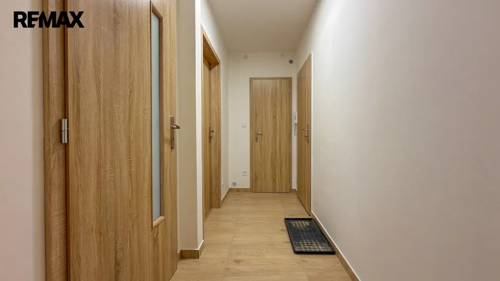 Byt působí velmi příjemným a čistým dojmem, dispozice je praktická a vhodná jak pro pár, tak pro tříčlennou rodinu. K bytu náleží komora na patře a sklepní kóje, k dispozici je rovněž společná kolárna v domě. Před domem se nachází parkoviště s dostatkem parkovacích míst.