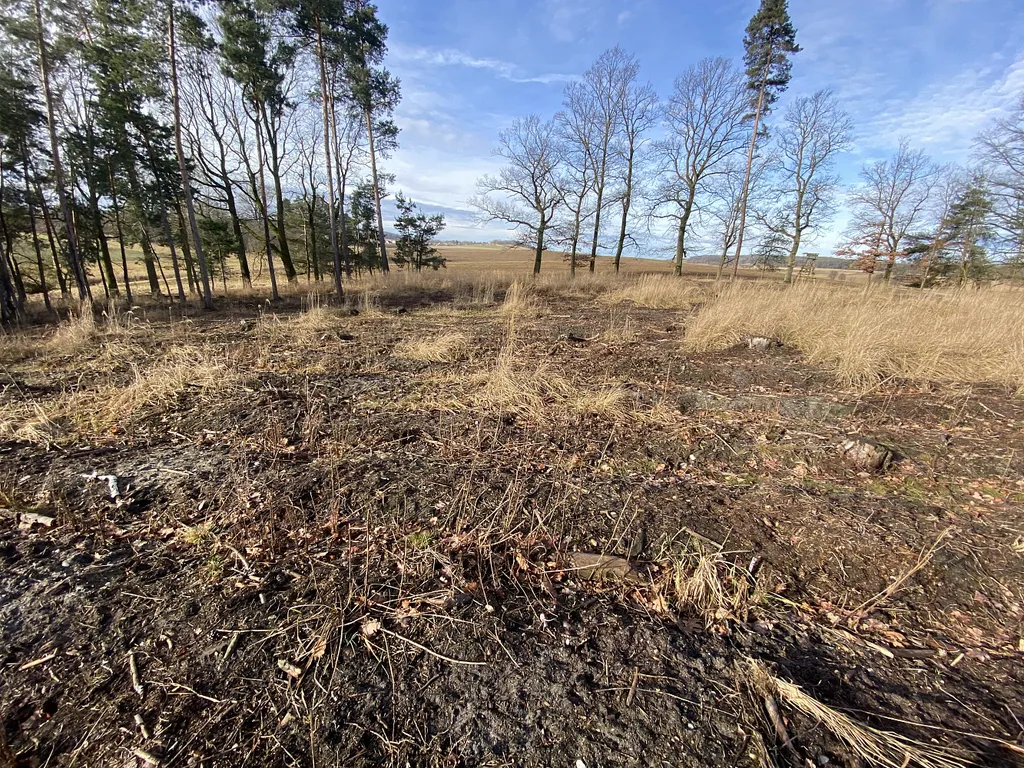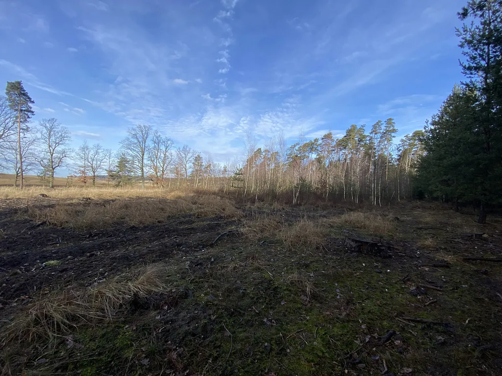 Prodej lesního pozemku v katastrálním území Veliny, okr. Pardubice. Jedná se o pozemek p.č. 1093/22 o výměře 4.968 m². Pozemek je situován na rovině až mírně svažitém terénu s přístupem po nezpevněné lesní cestě až k pozemku. Na menší části plochy pozemku se nachází mladý lesní porost borovice a břízy, zbylá plocha pozemku je naorána a připravena k osázení. Místy se zde vyskytují mladé semenáčky borovice z přirozeného zmlazení. Foto je aktuální. List vlastnictví č. 508.