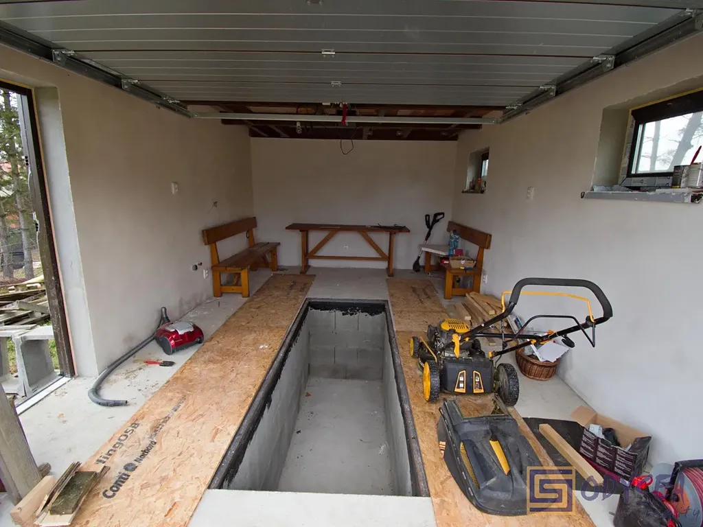 Nabízíme prodej stavebního pozemku o výměře 1150 m2 v obci Krmelín, okres Frýdek-Místek. Pozemek je oplocený, zatravněný, místo určené k budoucí stavbě je rovinaté (proběhly již vyrovnávací terénní práce), okraj pozemku za budoucím domem je svažitý (viz fotogalerie). Na pozemku již byl realizován projekt zděné garáže o zastavěné ploše 24 m2, garáž má sedlovou střechu s úložným prostorem v podkroví, krom parkovacího místa je v garáži k dispozici i montážní šachta pro opravu a údržbu automobilu. V garáži je k dispozici elektřina, voda a kanalizace, vede k ní zpevněná plocha už od vjezdu na pozemek.