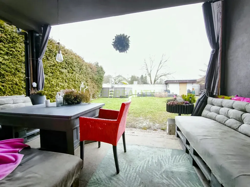 Přízemí domu tvoří vstupní chodba, prostorná kuchyně s jídelním koutem, doplněná o praktickou komoru, obývací pokoj s přímým vstupem na venkovní zastřešenou terasu, technická místnost, sociální zařízení, a dále prostory kosmetického salónu přístupné jak z domu, tak samostatným vchodem z pozemku. Vzhledem k tomu, že kosmetický salon je přístupný i ze vstupní chodby domu, lze prostor využít jako další pokoj.