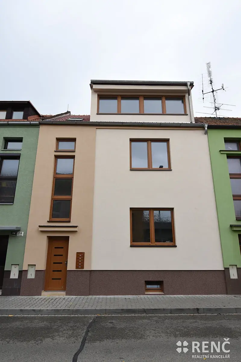 K pronájmu nabízíme zrekonstruovaný byt o dispozici 2+kk, o podlahové ploše 41 m2, který je umístěn ve zděném domě v klidné části Černovic na ulici Churého v Brně. Dům, ve kterém se byt nachází je nyní po kompletní rekonstrukci, je nízkoenergetický, nově zateplený a s novými okny. Za domem je zahrada, kterou je možné využívat.