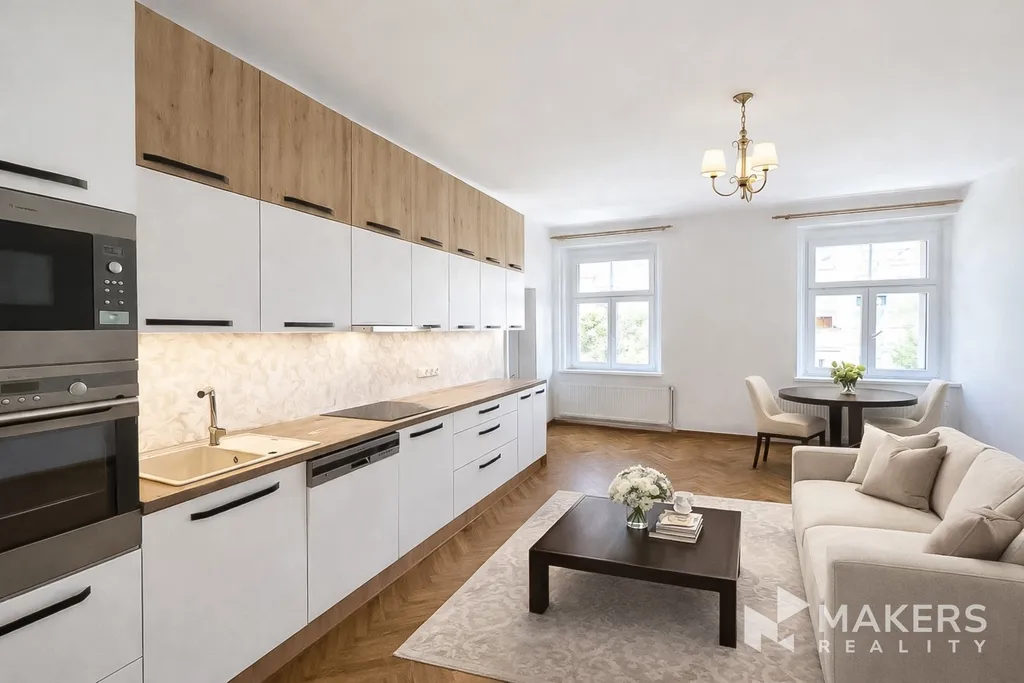 Nabízíme k pronájmu moderní a velmi prostorný byt o dispozici 2+kk a velikosti 80 m², situovaný ve 2. patře cihlového domu bez výtahu v klidné části Žižkova, v ulici U Kněžské louky. Byt prošel kompletní rekonstrukcí a je připraven k okamžitému nastěhování.