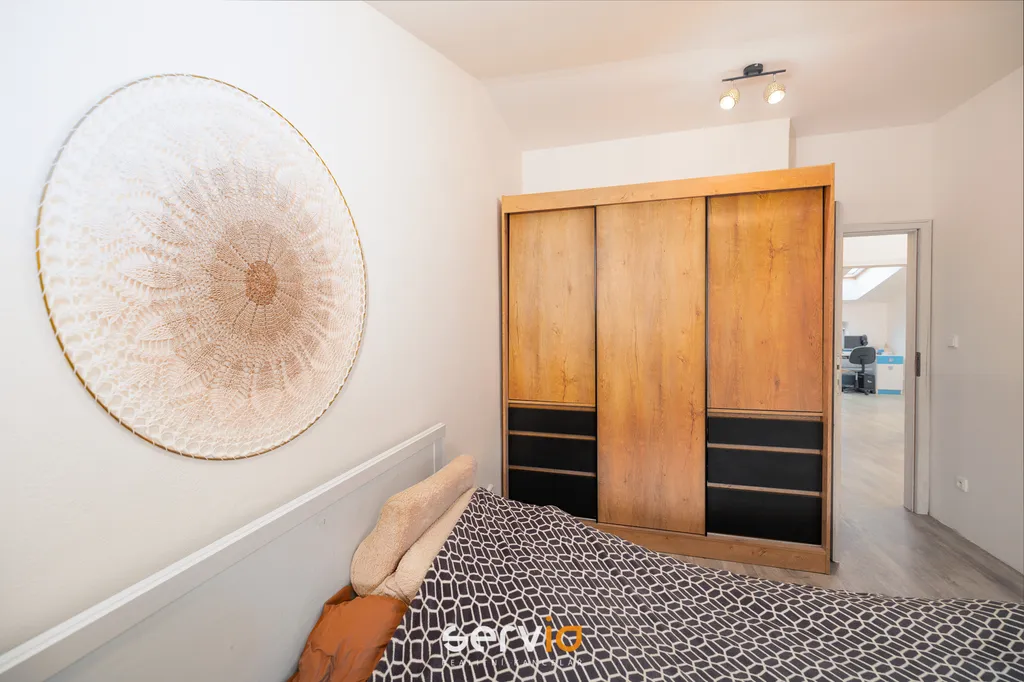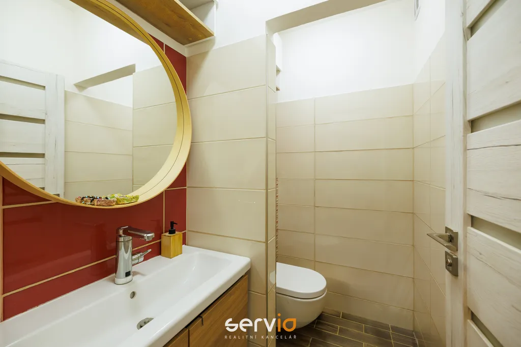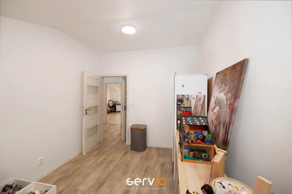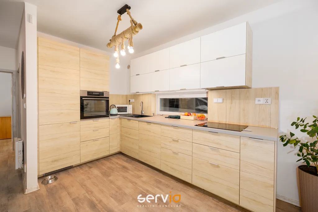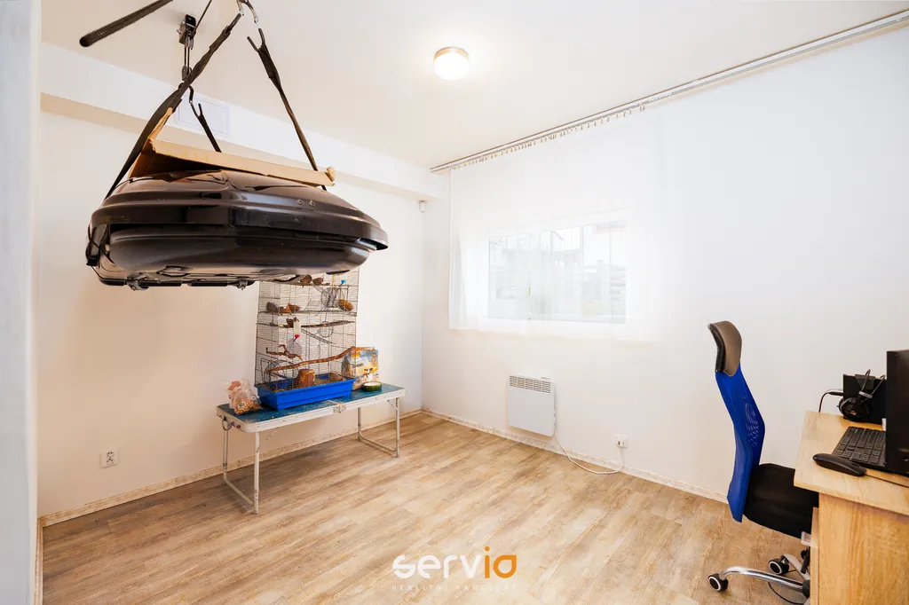 Jedná se o patrový dům o 2.NP v blokové zástavbě rodinných domů mimo hlavní ulici. V přízemí se nachází obývací pokoj s kuchyňským koutem, vstupem na zahradu s terasou, pracovna a WC. V patře zbývající 3 pokoje a koupelna s vanou a WC. Možnost parkovaní na vlastním pozemku až pro 3 auta, z toho 1 kryté za uzamykatelnou bránou.