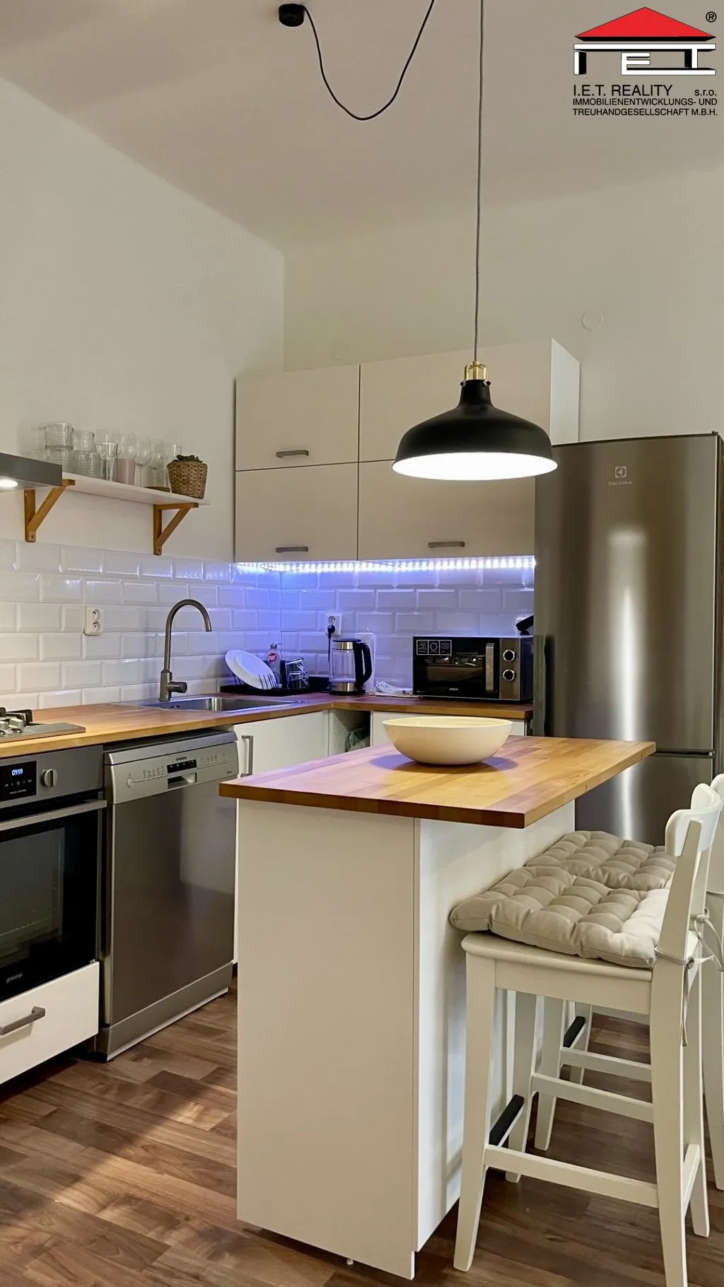 Prodej plně vybaveného bytu 2+kk po celkové rekonstrukci, který se nachází v 1. patře cihlového domu s výtahem v ulici Bulharská, Praha 10 Vršovice. Výměra bytu je 53 m2, a skládá se z chodby, ze které máte vstup do prostorného obývacího pokoje s kuchyní a do koupelny, která je vybavená vanou, pračkou a bojlerem na ohřev vody. WC je samostatné. Z obývacího pokoje je vstup na balkón, který vede do tichého vnitrobloku se stromy a zelení. Z obývacího pokoje je potom vstup do prostorné ložnice. Součásti kuchyně, která je plně vybavená (lednice, plynový sporák v kombinaci s horkovzdušnou troubou, myčka na nádobí, mikrovlnná trouba), je také prostorná komora. Do bytu je zaveden optický kabel pro vysokorychlostní internet. Všechny okna jsou orientována do vnitrobloku. K dispozici je samostatná uzamykatelná sklepní kóje.
