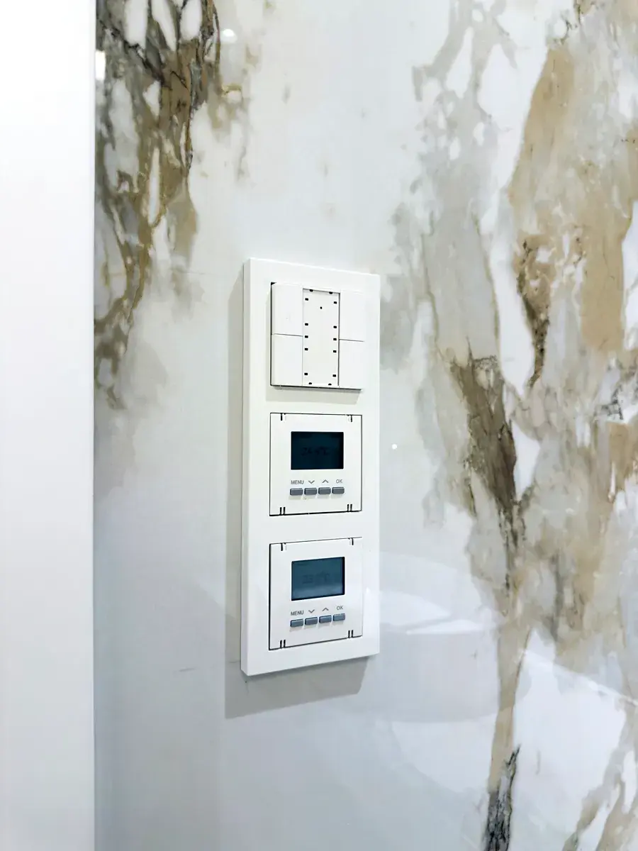 O celoroční tepelný komfort se stará moderní systém stropního vytápění a chlazení napojený na geotermální zdroj, s možností individuální regulace v jednotlivých místnostech. Součástí standardu jsou rovněž venkovní screenové rolety a inteligentní ovládání vybraných funkcí bytu.
