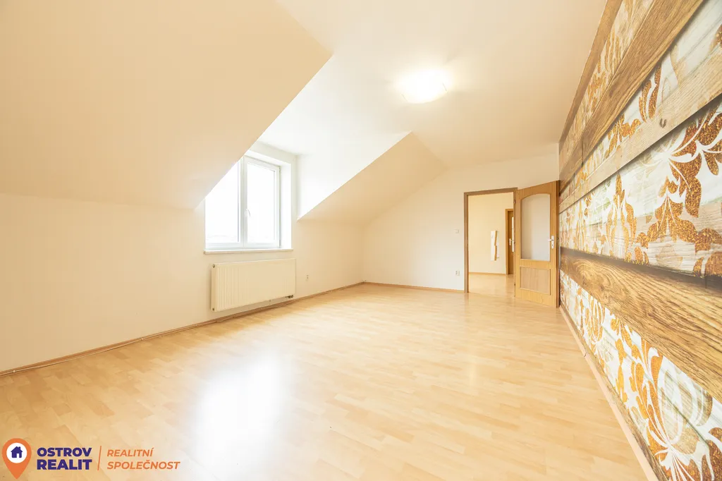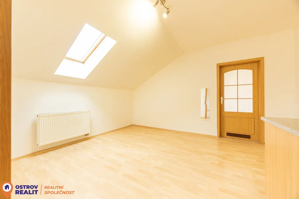 Byt zaujme svou jedinečnou atmosférou – šikmé stropy, vzdušný prostor a originální charakter podkroví vytváří velmi příjemné a klidné bydlení.