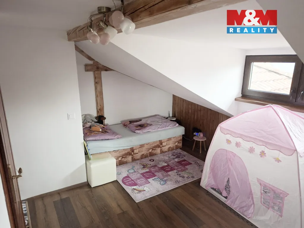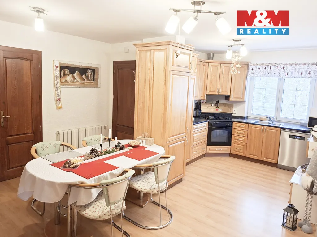 Dominantou domu je velkorysá denní místnost s vnitřním bazénem, která zajišťuje nadstandardní komfort bydlení. Dispozice nabízí vstupní zádveří, technickou místnost, garáž, halu s kuchyňským koutem, obývací pokoj, dva samostatné pokoje, koupelnu a samostatné WC. V podkroví se nachází otevřený obytný prostor a druhá koupelna. Vytápění plynovým kotlem nebo krbem napojeným na ÚT s akumulační nádrží 1 000 l, ovládání i přes mobilní telefon. Dům je napojen na plyn, vodovod a kanalizaci, k dispozici je také vrtaná studna. Pozemek 1 068 m², užitná plocha 228 m².